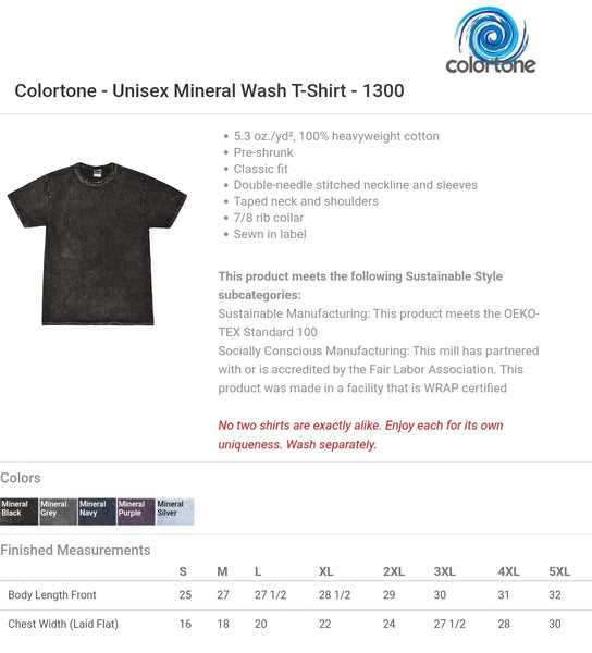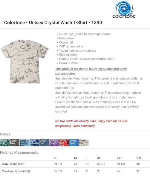 This design will be screen printed onto a Bella and Canvas unisex t-shirt (Solid Black Blend), a ColorTone Mineral Wash Unisex Tshirt (black) a ColorTone Tie Dye Unisex Tshirt (black), a Gildan Unisex Crewneck Sweatshirt (Black), a Gildan Unisex Hoodie (Black), a Comfort Colors Ladies Boxy Tee (pepper), or an American Apparel Ladies Boxy Tee (black). If you prefer a different color or style shirt, send me a message! There is no guarantee of consistency amongst individual mineral wash and tie dye garments. Actual colors may vary. This is due to the fact that every computer monitor has a different capability to display colors and that everyone sees these colors differently.